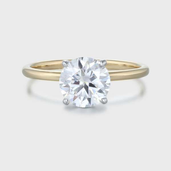 Vintage Classic Two Tone 4 Claw 1.5 Carat Round Cut Lab Grown Diamond Engagement Ring Yellow Gold Solitaire Ring